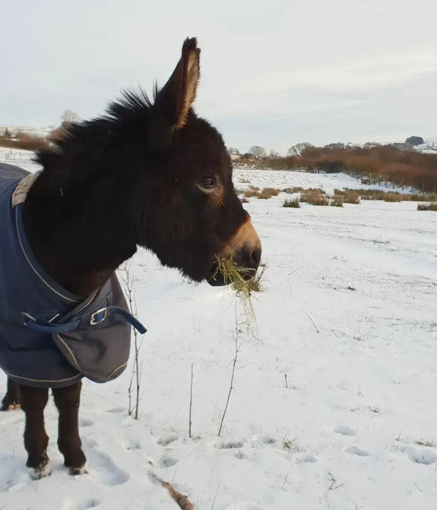 This is a smallholding and the mini donkeys are pets – they will see out their natural lives under the gentle care of their owner. Should weather conditions be averse, we’ll be in touch to reschedule or refund. Slightly rainy weather is fine but with wet or very windy weather, the donkeys prefer to stay in their barn.